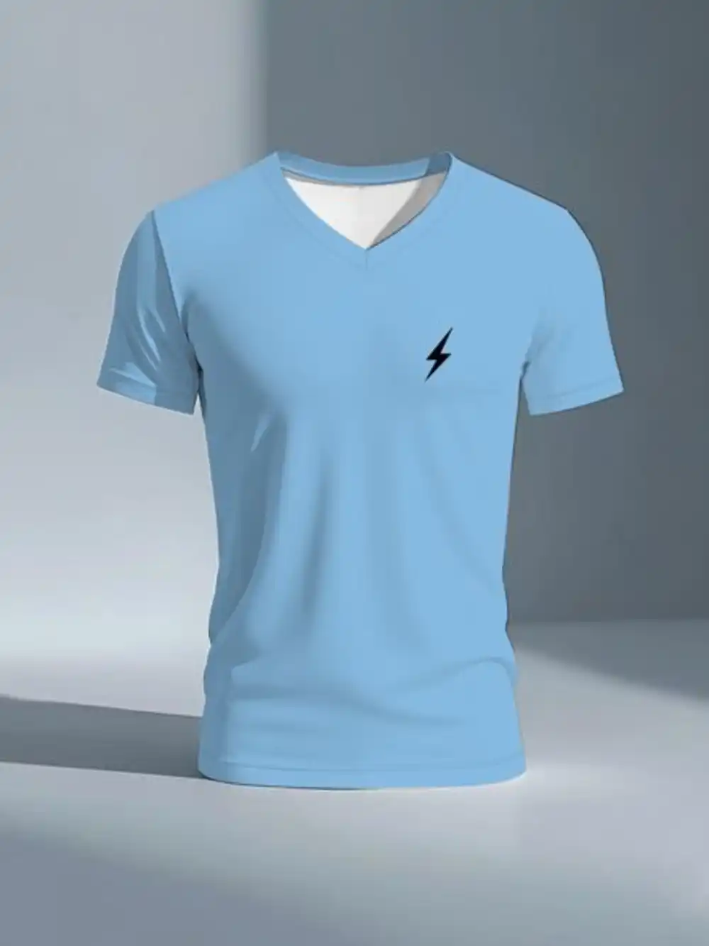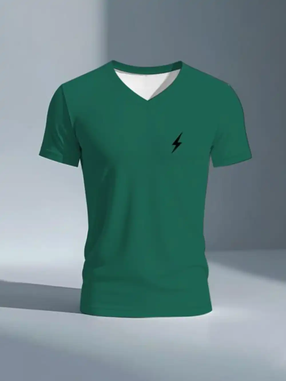 Product Name | Men's casual v-neck t-shirt breathable regular cut short sleeve printed chest solid wholesale |