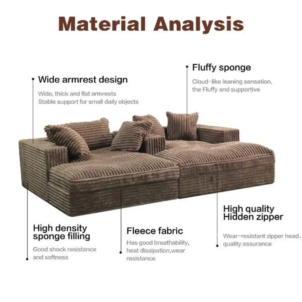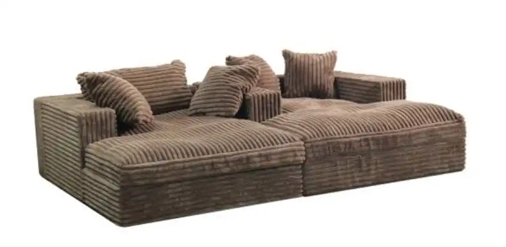 Comprising two quality mattresses and two angled cushions, TEDDY is designed for easy rearrangement. Secured by three chrome-plated metal bars, TEDDY maintains its flexibility. The mattresses, crafted from high-grade cold foam, strike a balance between firm support and comfort for both sitting and sleeping. The angled cushions are filled with silicon ball fiber encased in an inner fabric sleeve, allowing for easy removal of the outer fabric without disturbing the foam. TEDDY is swathed in plush corduroy fabric known for its exceptional quality and durability.