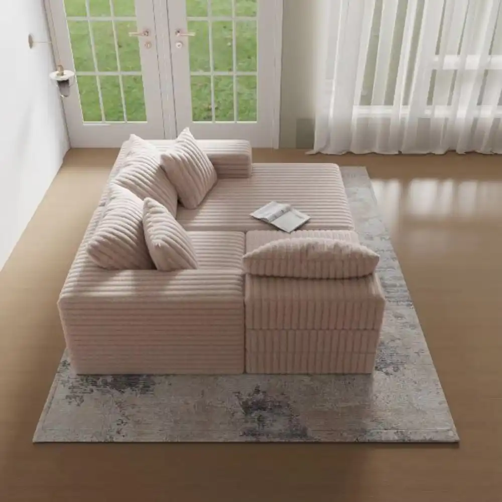 Comprising two quality mattresses and two angled cushions, TEDDY is designed for easy rearrangement. Secured by three chrome-plated metal bars, TEDDY maintains its flexibility. The mattresses, crafted from high-grade cold foam, strike a balance between firm support and comfort for both sitting and sleeping. The angled cushions are filled with silicon ball fiber encased in an inner fabric sleeve, allowing for easy removal of the outer fabric without disturbing the foam. TEDDY is swathed in plush corduroy fabric known for its exceptional quality and durability.