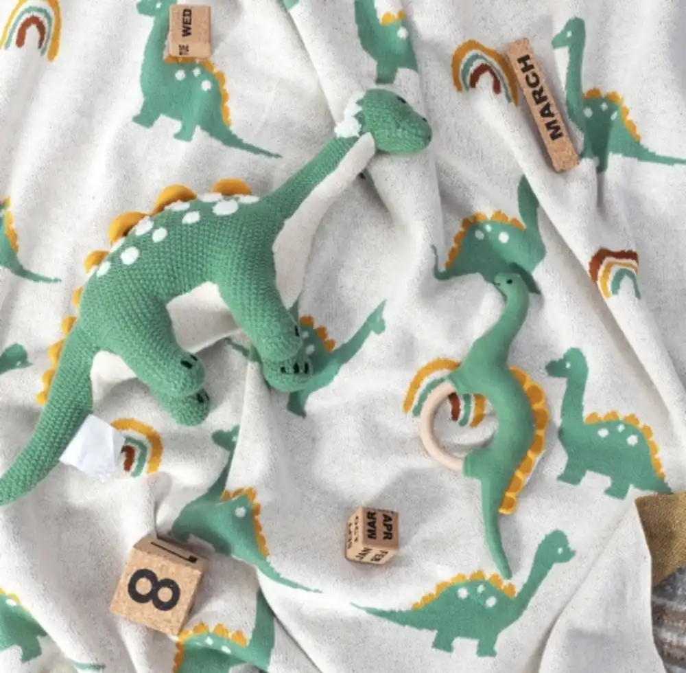 Knitted Dino Gift Set Organic Cotton Plush Toys for new born baby Kids Baby Girls Boys